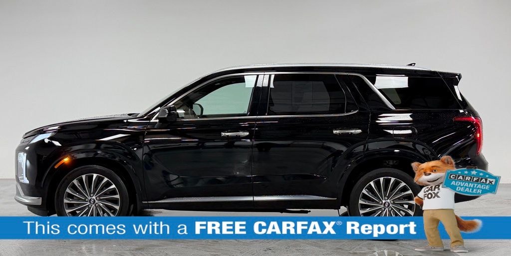 This Palisade is well equipped with Option Group 01, Hyundai Certified Used Vehicles Certified, Navigation System, 12 Speakers, 3.648 Axle Ratio, 3rd row seats: split-bench, 4-Wheel Disc Brakes, ABS brakes, Air Conditioning, Alloy wheels, AM/FM radio: SiriusXM, Apple CarPlay & Android Auto, Auto High-beam Headlights, Auto-dimming door mirrors, Auto-dimming Rear-View mirror, Auto-leveling suspension, Automatic temperature control, Brake assist, Bumpers: body-color, Cargo Cover/Screen, Cargo Net, Cargo Tray, Carpeted Floor Mats, Compass, Delay-off headlights, Driver door bin, Driver vanity mirror, Dual front impact airbags, Dual front side impact airbags, Electronic Stability Control, Emergency communication system: Blue Link Connected Car Service (3-year complimentary subscription), Exterior Parking Camera Rear, Four wheel independent suspension, Front anti-roll bar, Front Bucket Seats, Front Center Armrest, Front dual zone A/C, Front reading lights, Fully automatic headlights, Garage door transmitter: HomeLink, harman/kardon® Speakers, Heads-Up Display, Heated & Ventilated Front Bucket Seats, Heated door mirrors, Heated front seats, Heated rear seats, Heated steering wheel, Illuminated entry, Knee airbag, Low tire pressure warning, Memory seat, Occupant sensing airbag, Outside temperature display, Overhead airbag, Overhead console, Panic alarm, Passenger door bin, Passenger vanity mirror, Power door mirrors, Power driver seat, Power Liftgate, Power moonroof, Power passenger seat, Power steering, Power windows, Premium Nappa Leather Seat Trim, Radio data system, Radio: AM/FM/MP3 Premium Audio System, Rain sensing wipers, Rear air conditioning, Rear anti-roll bar, Rear audio controls, Rear reading lights, Rear side impact airbag, Rear window defroster, Rear window wiper, Reclining 3rd row seat, Remote keyless entry, Security system, Speed control, Speed-sensing steering, Splash Trim, Split folding rear seat, Spoiler, Steering wheel mounted audio controls, Tachometer, Telescoping steering wheel, Tilt steering wheel, Traction control, Trip computer, Turn signal indicator mirrors, Variably intermittent wipers, Ventilated front seats, Ventilated rear seats, Wheel Locks, and Wheels: 20" x 7.5J Calligraphy Exclusive Alloy.