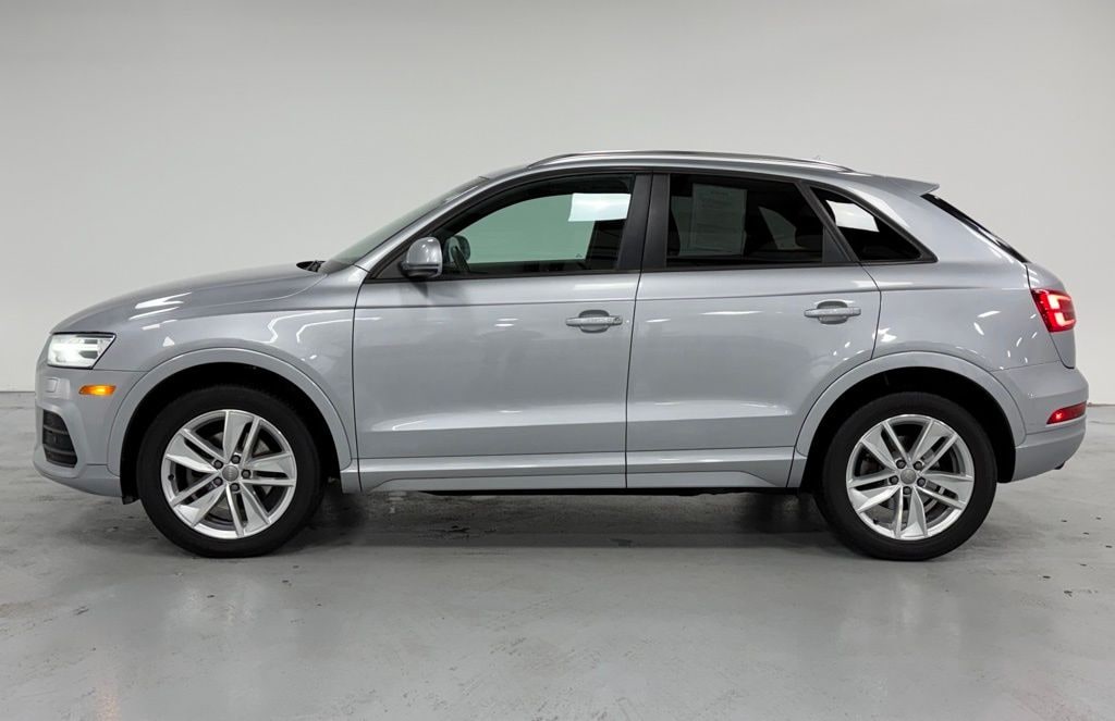 This Q3 is well equipped with Audi MMI Navigation Plus Package (Audi Connect w/Online Services and Audi MMI Navigation Plus), Convenience Package (Audi Advanced Key), 10 Speakers, 4-Wheel Disc Brakes, ABS brakes, Air Conditioning, Alloy wheels, AM/FM radio, Automatic temperature control, Axle Ratio: TBD, Black Cloth Headliner, Black Homelink, Brake assist, Bumpers: body-color, CD player, Delay-off headlights, Driver door bin, Driver vanity mirror, Dual front impact airbags, Dual front side impact airbags, Electronic Stability Control, Exterior Parking Camera Rear, Four wheel independent suspension, Front anti-roll bar, Front Bucket Seats, Front Center Armrest, Front dual zone A/C, Front fog lights, Front reading lights, Fully automatic headlights, Heated Front Seats, High intensity discharge headlights: Xenon plus, Illuminated entry, Leather Seating Surfaces, Leather Shift Knob, Leather steering wheel, Low tire pressure warning, Navigation System, Occupant sensing airbag, Outside temperature display, Overhead airbag, Overhead console, Panic alarm, Passenger door bin, Passenger vanity mirror, Power door mirrors, Power driver seat, Power moonroof, Power passenger seat, Power steering, Power windows, Radio data system, Radio: Audi Concert, Rain sensing wipers, Rear anti-roll bar, Rear fog lights, Rear reading lights, Rear seat center armrest, Rear window defroster, Rear window wiper, Remote keyless entry, Roof rack: rails only, Security system, Speed control, Speed-sensing steering, Split folding rear seat, Spoiler, Steering wheel mounted audio controls, Tachometer, Telescoping steering wheel, Tilt steering wheel, Traction control, Trip computer, Turn signal indicator mirrors, Variably intermittent wipers, and Wheels: 7.0" x 18" 5-Arm Turbine Design.