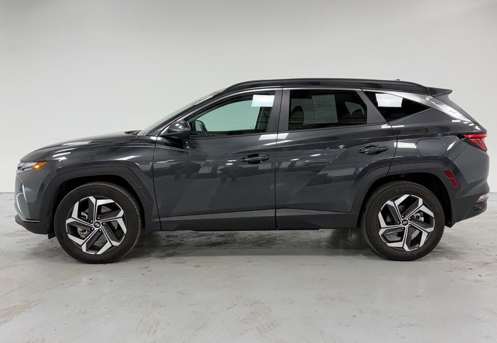 This Tucson is well equipped with Convenience Package (10.25" Digital Instrument Cluster, Auto-Dimming Interior Mirror w/Homelink, Dual Automatic Temperature Control, H-Tex Seat Trim, Leather-Wrapped Shift Knob, Leather-Wrapped Steering Wheel, LED Interior Lights (Room, Map), Option Group 02, Power Sunroof, Ultrasonic Rear Occupant Alert, and Wheels: 19" x 7.5J" Machine-Face Finish Alloy), AWD, 3.648 Axle Ratio, 4-Wheel Disc Brakes, 6 Speakers, ABS brakes, Air Conditioning, Alloy wheels, AM/FM radio: SiriusXM, Apple CarPlay & Android Auto, Auto High-beam Headlights, Brake assist, Bumpers: body-color, Cargo Cover, Cargo Net, Cargo Tray, Carpeted Floor Mats, Delay-off headlights, Driver door bin, Driver vanity mirror, Dual front impact airbags, Dual front side impact airbags, Electronic Stability Control, Emergency communication system: Blue Link Connected Car Service (3-year complimentary subscription), Four wheel independent suspension, Front and Rear Mudguards, Front anti-roll bar, Front Bucket Seats, Front Center Armrest, Front reading lights, Fully automatic headlights, Heated door mirrors, Heated Front Bucket Seats, Heated front seats, Illuminated entry, Low tire pressure warning, Occupant sensing airbag, Outside temperature display, Overhead airbag, Overhead console, Panic alarm, Passenger door bin, Passenger vanity mirror, Power door mirrors, Power driver seat, Power Liftgate, Power steering, Power windows, Radio data system, Radio: AM/FM/HD/SiriusXM Audio System, Rear anti-roll bar, Rear Bumper Applique, Rear seat center armrest, Rear window defroster, Rear window wiper, Remote keyless entry, Roof rack: rails only, Security system, Speed control, Split folding rear seat, Spoiler, Stain & Odor Resistant Cloth Seat Trim, Steering wheel mounted audio controls, Tachometer, Telescoping steering wheel, Tilt steering wheel, Traction control, Trip computer, Turn signal indicator mirrors, Variably intermittent wipers, and Wheels: 17" x 7.0J" Alloy.