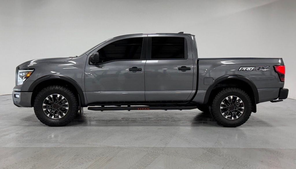 Gun Metallic 2024 Nissan Titan 4D Crew Cab PRO-4X 5.6L V8 DOHC 32V LEV3-ULEV70 400hp 4WD Odometer is 1511 miles below market average! Clean CARFAX.